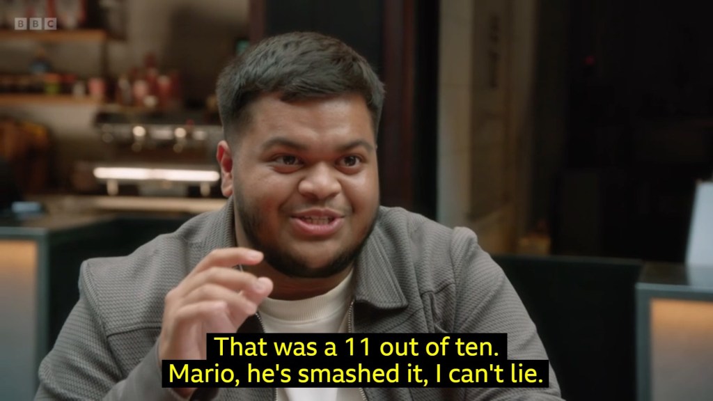 nothing was funnier this round than everyone critiquing Mario’s dessert for being too sweet or not made correctly only to cut to Rizwan Ahmed having some sort of religious experience over how good he thought it was