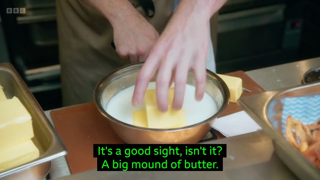 he definitely did the best job of tapping into the ~spirit~ of MasterChef street-food where it’s something recognisable with a good twist fine dining nonsense – the fine dining nonsense being the admirable amount of butter