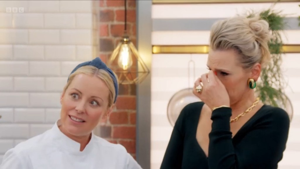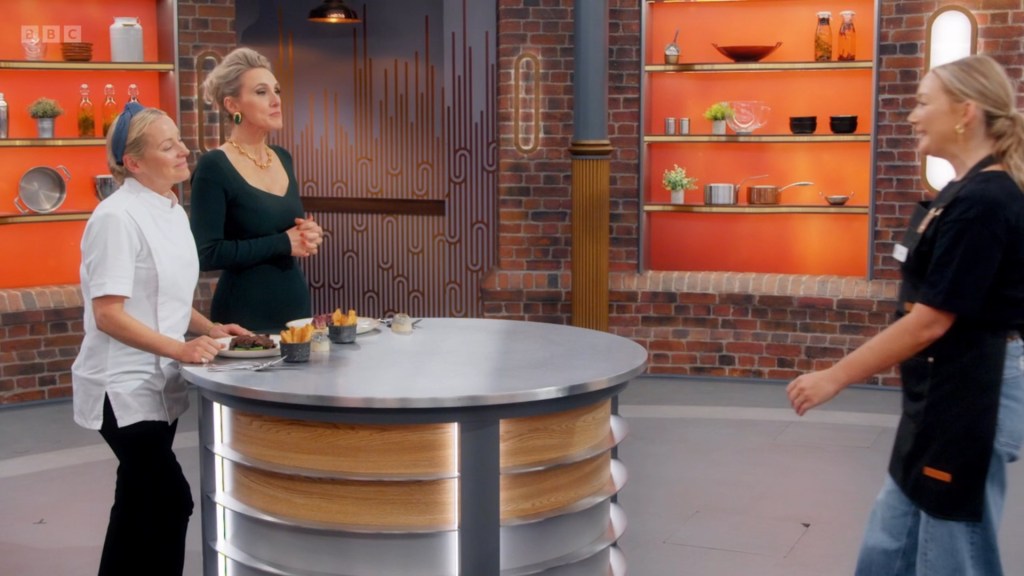 more important than perspex cladding, is the changing of the hosts as John sits with his carbonara for one while pondering “Why did Lisa Faulkner take the Single White Female role?” and Gregg flogs woks on TikTok with an audio quality that suggests his microphone is in his toilet cistern, the show is now helmed by Grace Dent conducting everything like she’s the evil queen in Buxton Panto (mostly a compliment)