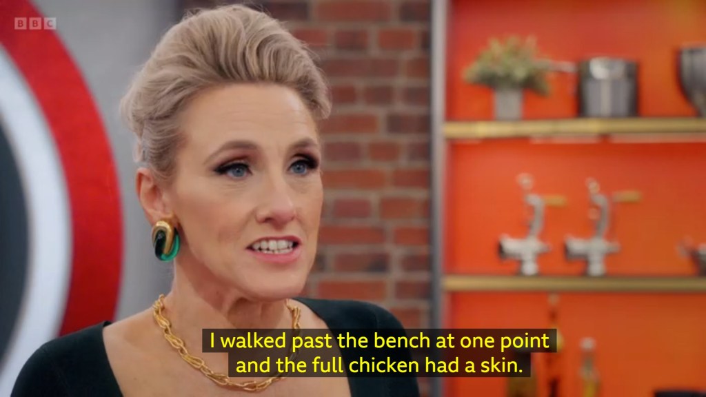 Sadly the rejigging of the format has not moved the Two Course Menu Challenge back to its usual quarterfinal slot where it belongs. I personally think it makes the heats seem way too cluttered having it this early. However the bigger problem is that with last year’s finalists: Claire Who I Apparently Convinced Myself Won, Harry Who Actually Won and Sophie, were the judging panel