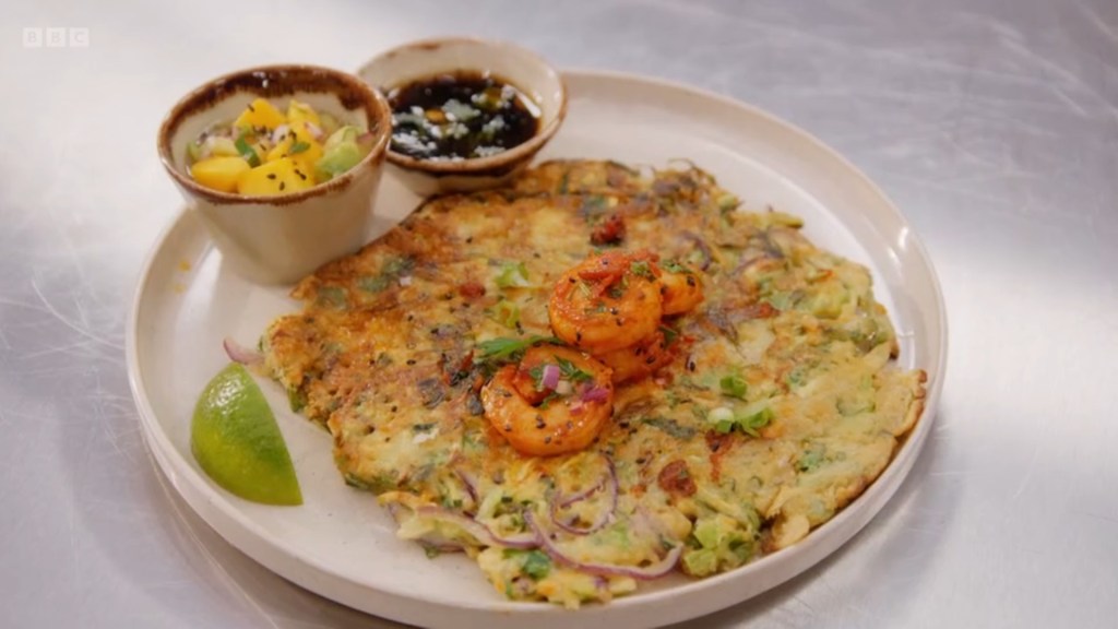 ultimately he probably just didn’t need to add the prawns which Anna was struggling to pick up in her portion. But as good as his flavours were, his actual pancakes were technically amongst the weaker attempts