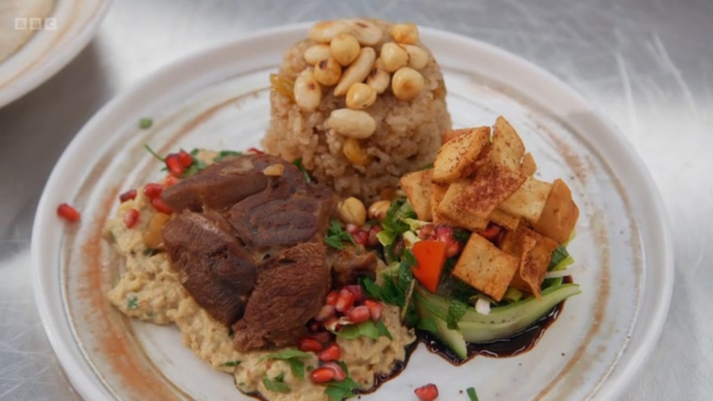 this was Simi’s Iranian Lamb Shank with Tahchin, a rice cake flavoured with rosewater, cinnamon, saffron and I think she had stuffed it with Barberries. It sounds delicious, it looks amazing. However, she was slightly undone by the greatest killer in the MasterChef Kitchen: The Pressure Cooker Named Hubris