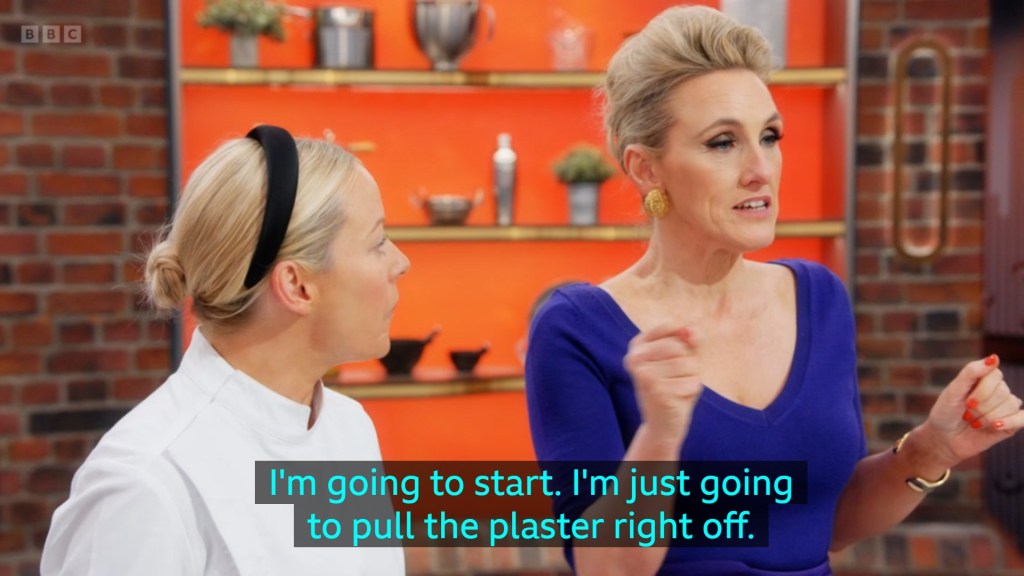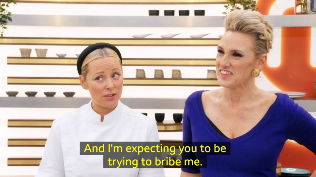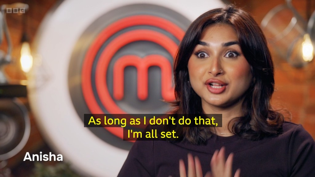 and I was going to be so mad if Anisha didn’t get an apron in the next challenge because I do think she really deserves it even if it does mean inevitably saying goodbye to two contestants who portion food like they’ve not eaten in days. AND GOD BLESS THEM FOR THAT.