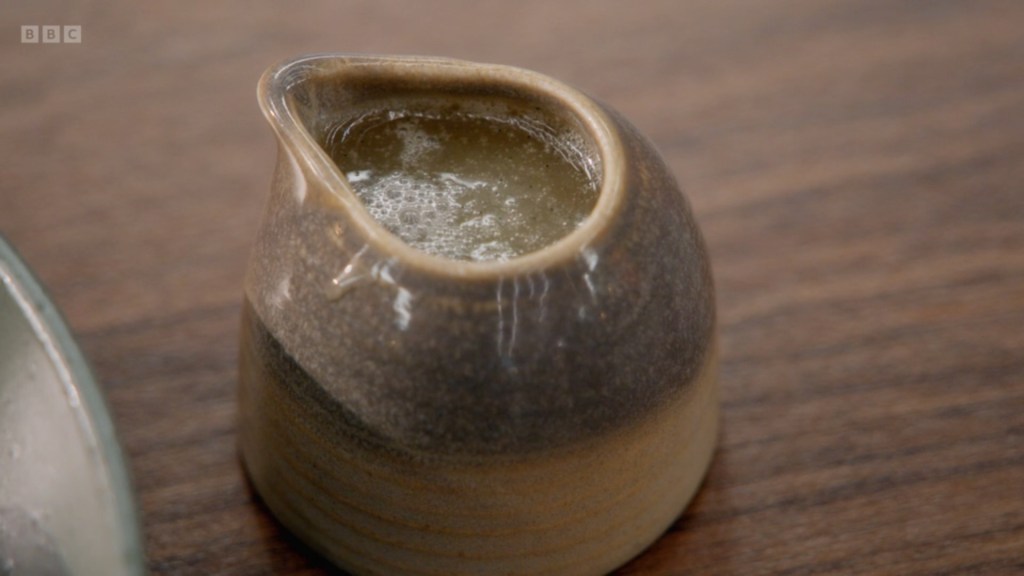 eventually she maxed out her sugar credit and they wouldn’t let her make a third batch so she resorted to just pouring her pear’s poaching liquid into the jug. My favourite part of which is Anna asking Noami what on earth is in the jug with a level of disgust usually reserved for a dead body