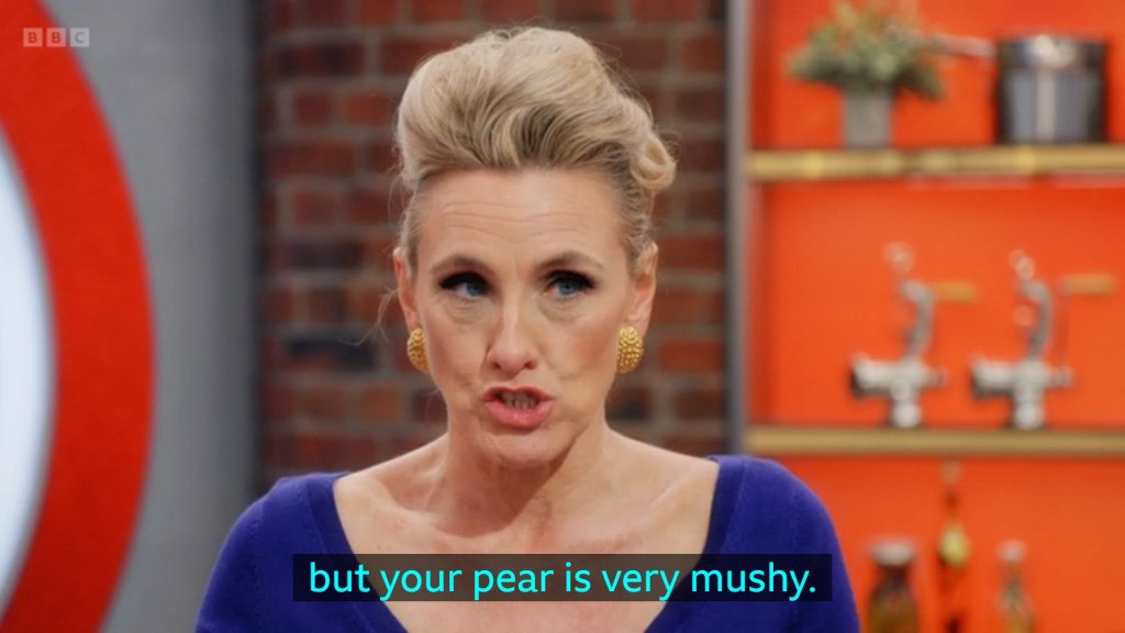 Anisha and Simi were much of a muchness when it came to comparisons, their puddings and toffee sauces were perfect but Simi had oversweetened and underwhipped her Vanilla Cream. While Anisha found out that you can’t really Venn Diagram your way through poaching a pear