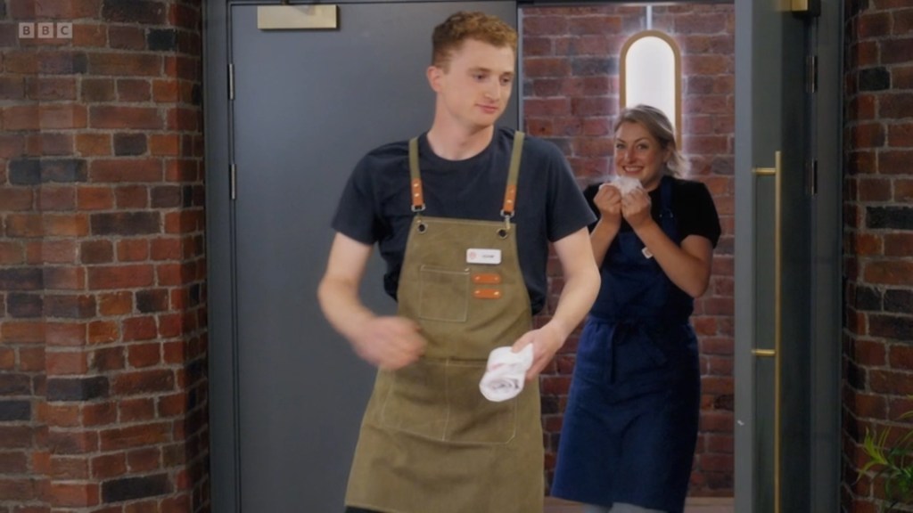 Adam might have been in serious trouble if Lenford hadn’t had as big a misplay as he did. The critique of needing refinement had obviously got to him and after serving a brick of macaroni cheese earlier, this challenge’s Main Course had been downgraded to but a single raviolo each which you were going to struggle to eat because he’d plated it up like Aesop’s Machiavellian fox